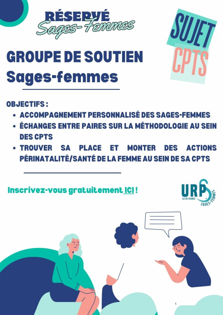 – de sages-femmes participantes : les sages-femmes libérales inscrites à ce groupe pourront bénéficier d’un accompagnement gratuit grâce à des conseils méthodologiques (intégration d’une CPTS, évaluation des besoins d’un territoire, initiative de projet, identification des parties prenantes…). A noter qu’un certain nombre de CPTS disposent de coordinateurs rémunérés qui soulagent toute la partie organisationnelle des projets.